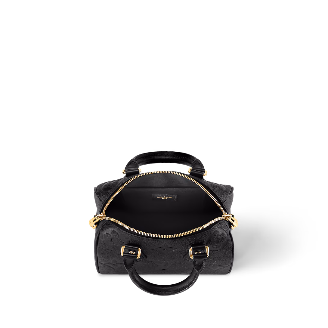La borsa Speedy Bandoulière 20 è reinterpretata per la Collezione Back to School in pelle Monogram Empreinte color rosso granato. L’elegante modello, indossabile in vari modi, è arricchito da raffinati dettagli in metallo dorato, come l’iconico lucchetto. Le dimensioni compatte consentono di portare con sé tutto l’essenziale, inclusi un libro tascabile e diversi prodotti di bellezza.